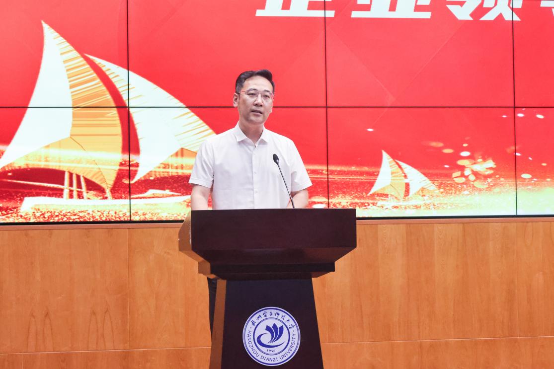 校研究生院院长范影乐代表学校致辞,感谢一直以来江苏帝奥微电子股份有限公司一直以来的无私捐助,并表示长期以来,学校非常重视校企合作,杭电与江苏帝奥微电子股份有限公司联合举办研究生电子设计竞赛是深化校企合作、加强产教融合、谋求发展共赢的生动实践,研究生电子设计竞赛以激励创新为办赛宗旨,以赛促学,以赛促教,不断发现培育经济社会急需的创新型人才。
